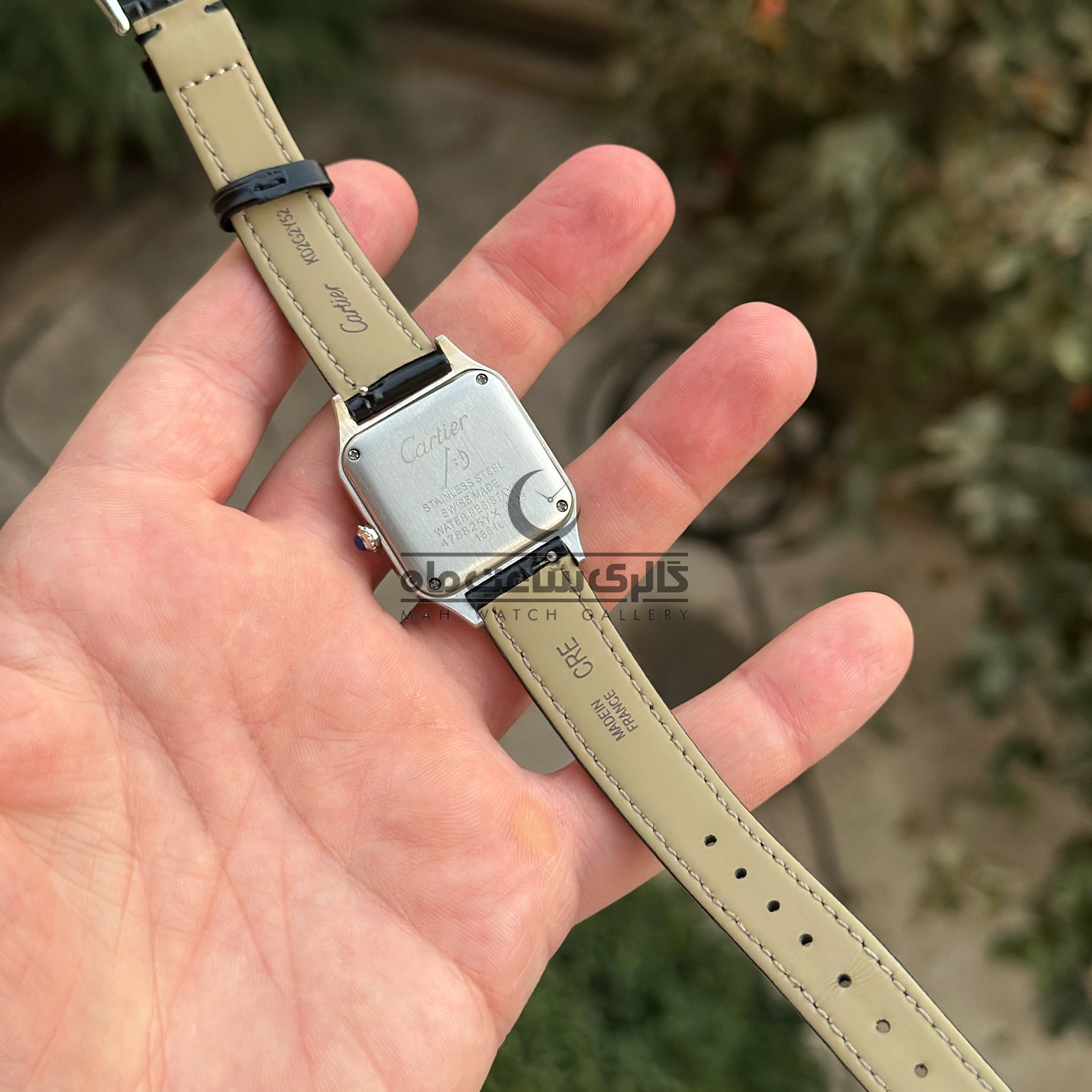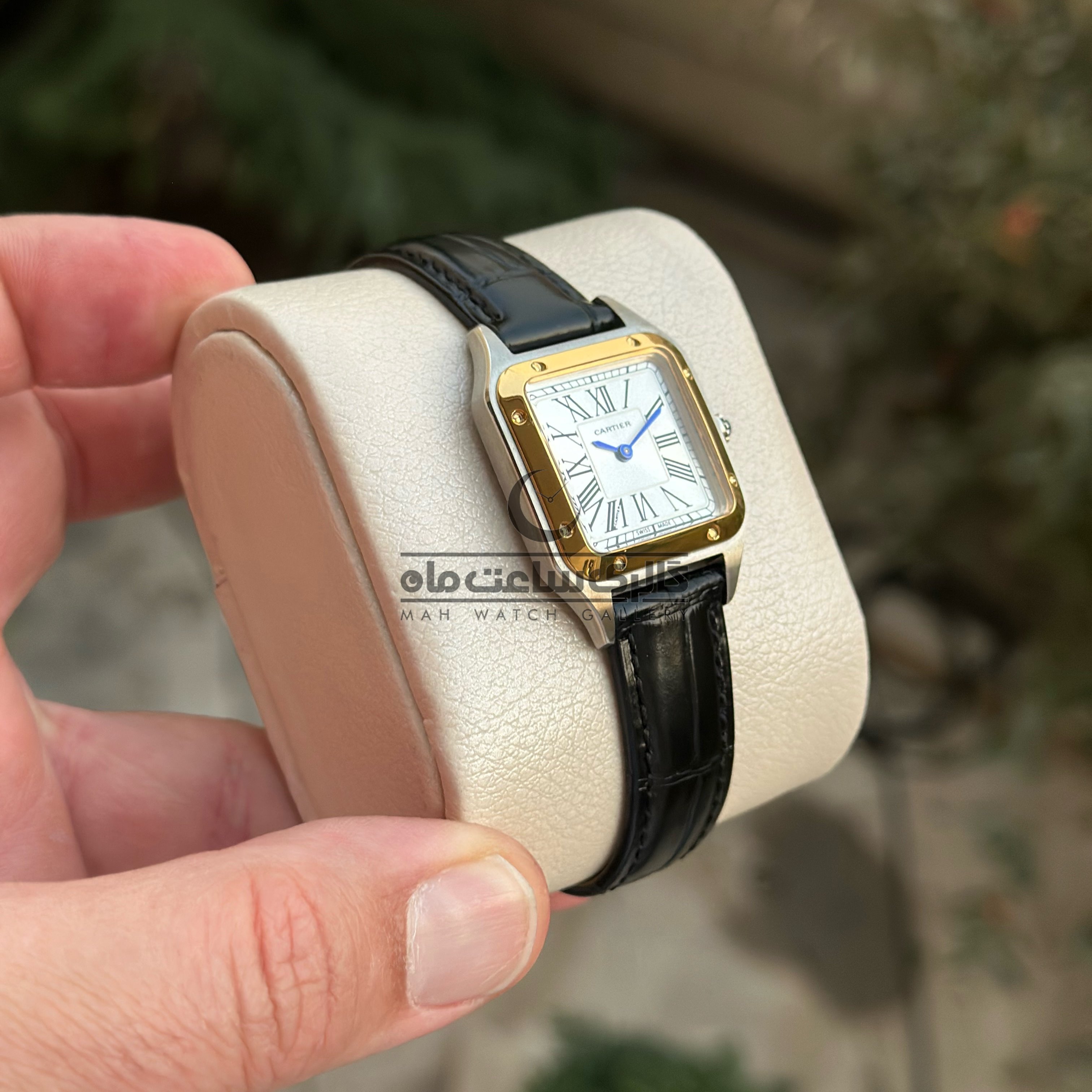 ساعت کارتیه دامنت زنانه قاب دورنگ طلایی چرم مشکی ۲۸mm