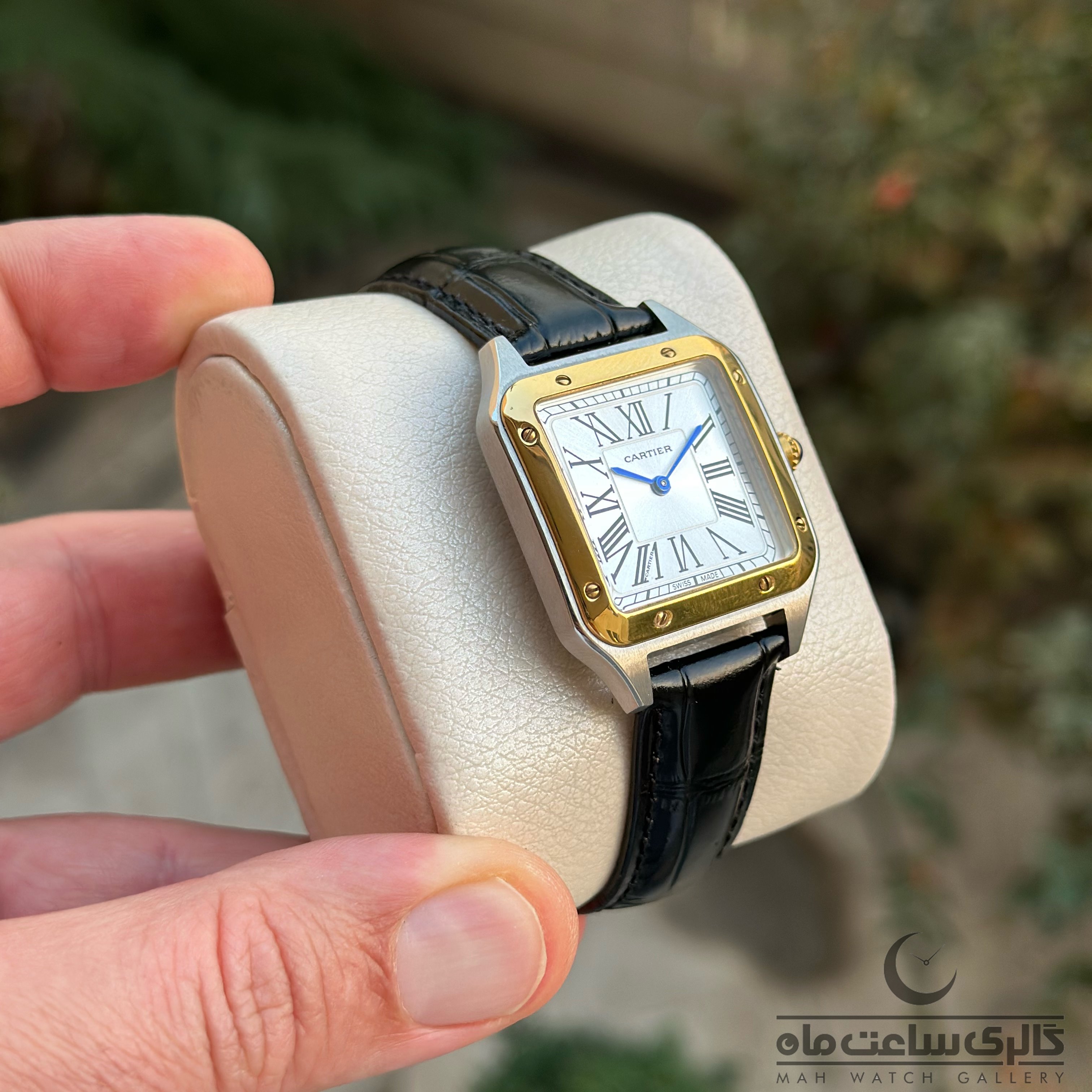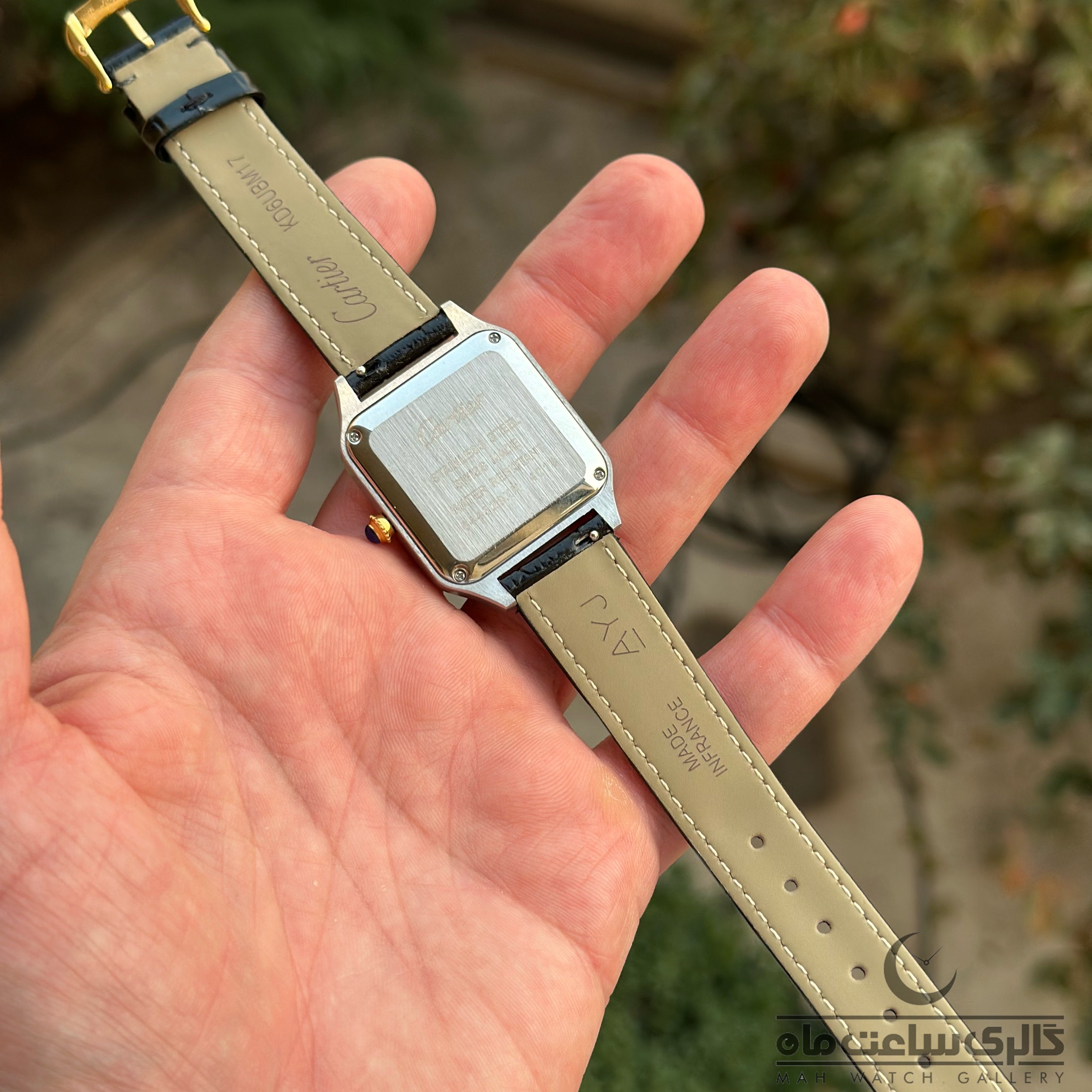 ساعت کارتیه دامنت زنانه قاب دورنگ طلایی چرم مشکی 32mm